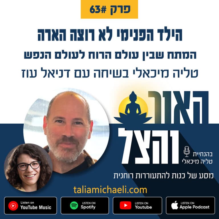 המתח שבין עולם הרוח לעולם הנפש: בפרק 63 אני מארחת את דניאל עוז, פסיכותרפיסט המתמחה בטיפול בטראומה ובהתמכרויות בגישת 12 הצעדים. דניאל מביא איתו שילוב ייחודי של ידע פסיכולוגי מערבי יחד עם תובנות עמוקות ממסורות הזן והבודהיזם, תוך שהוא משתף בפתיחות בסיפורו האישי והמרתק. דניאל מתאר בגילוי לב את המשבר ...